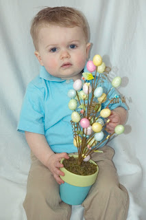 My husband isn't too keen on allowing me to take Brayden to get photos taken at a studio where they charge an arm and a leg. It's understandable, but sometimes you just want those cliche holiday or milestone photos. I have experience in photography myself, but not studio photography. Today we gave an attempt at an Easter photo with Brayden. Aside from a toddler not wanting to sit still for more than one third of a second, my "backdrop" was a white bed sheet (which works pretty decently) except when you have it hanging from the mantel by Yankee candles setting on it. Yeah, you can picture that. Of course they came tumbling down after ten minutes along with one of my hand made pottery bowls, which shattered. I wasn't too broken hearted. I was more broken hearted that it just didn't really work out. Maybe we will give it another shot some other time. Here is what I came out with...still a handsome guy!
